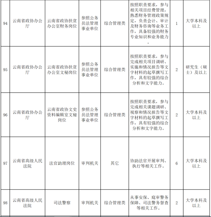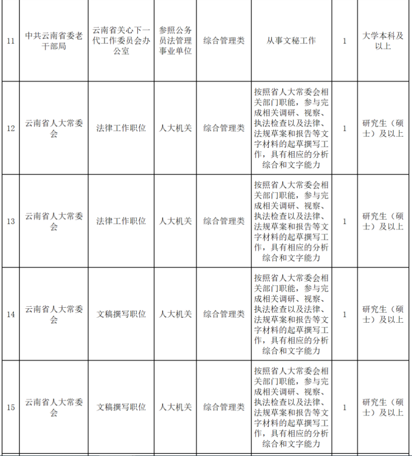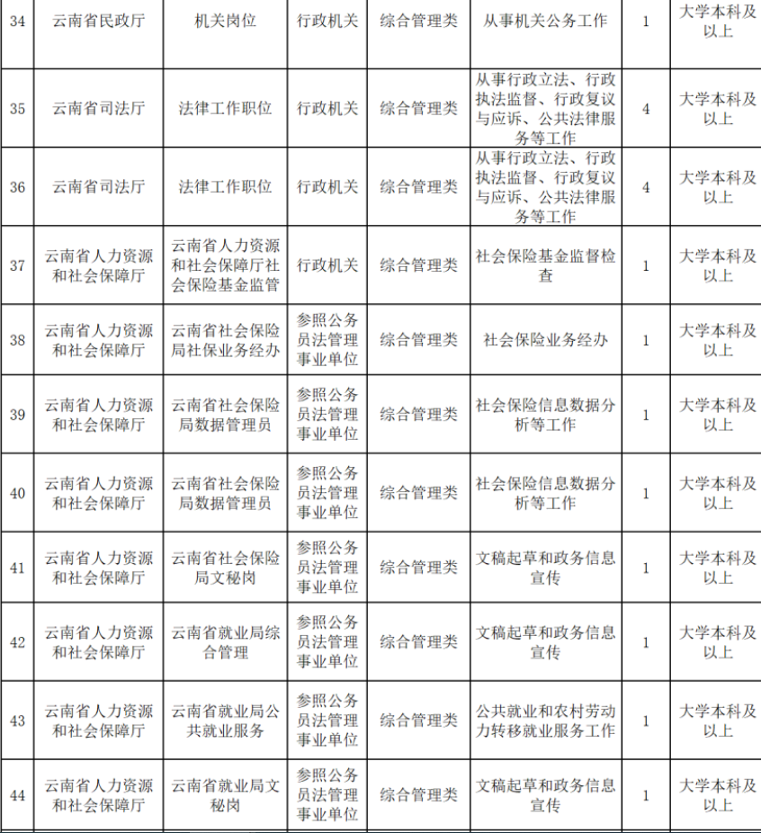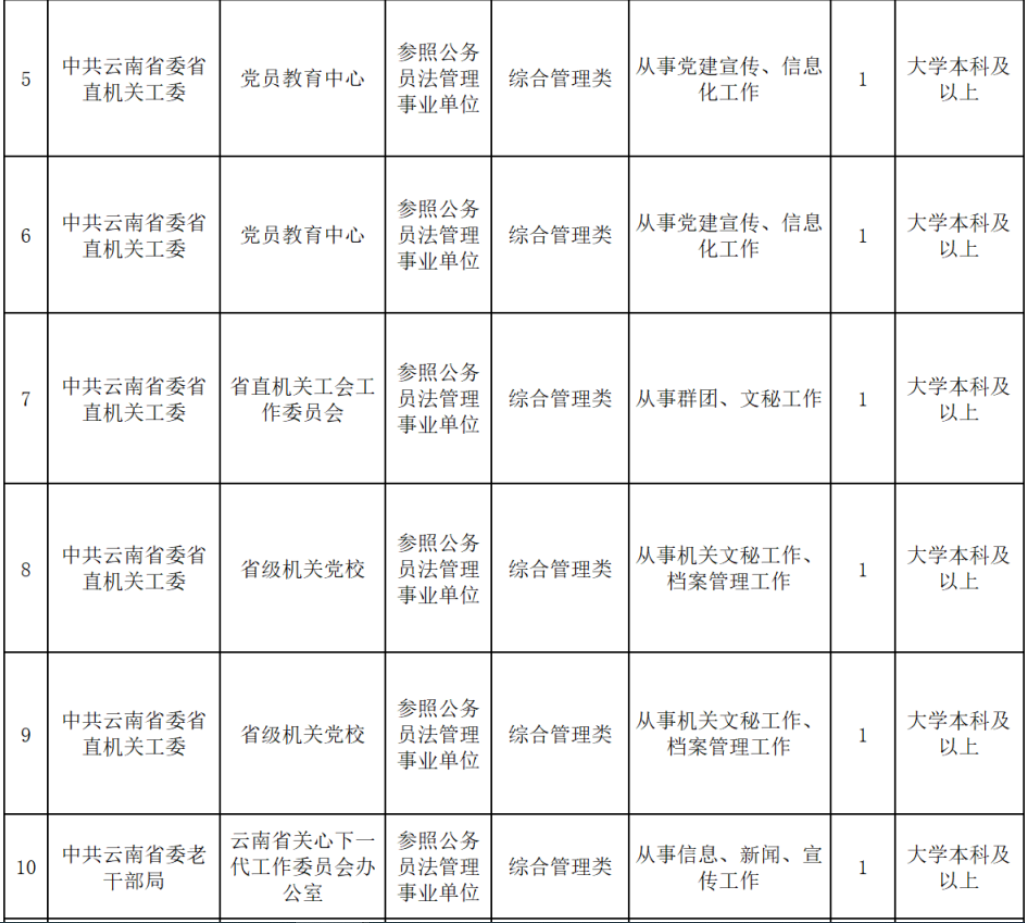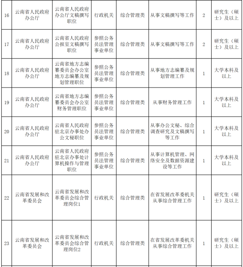 2021年下半年云南省省级机关统一公开遴选公务员公告