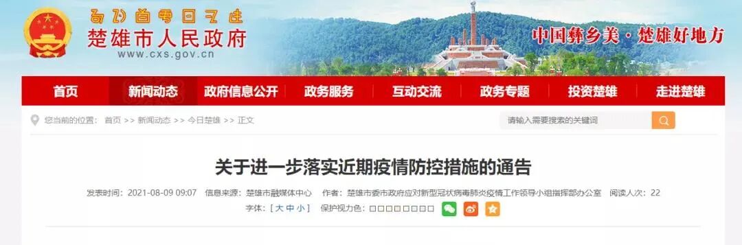 楚雄发布应对新冠肺炎疫情防控措施的通告,非必要不出行,严控聚集活动。