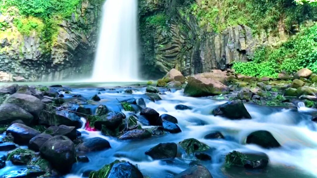 叠水河瀑布,被誉为“中国唯一的都市瀑布”。崖壁两侧排列着奇妙的柱状节理群,河水从左峡飞出,飘润崖谷,形成了“不用弓弹花自散”的迷人景观。顺着台阶走,可观赏河水从断崖飞流直下,声若雷鸣,脑海中不由得想起“飞流直下三千尺,疑是银河落九天”。