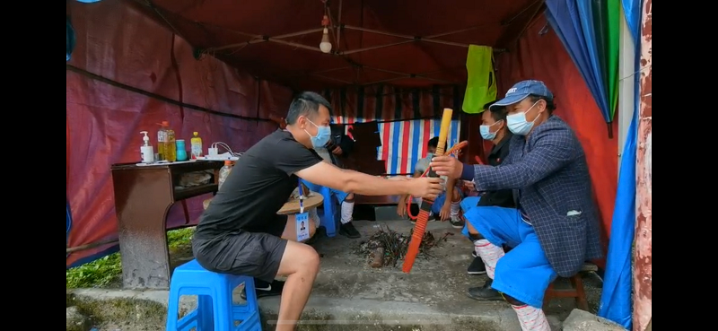 “这是我们的傈僳挎刀,我们傈僳人个个都是狩猎高手,现在带着挎刀守国门,心头踏实。”联族社区水城卡点的一位傈僳族同胞正在展示自己的得意“兵器”。而保山市公安局警务实战教官刘济铭,能熟练使用各类警械、武器。于是,两人你一言我一语,讨论开了“冷兵器、热兵器”的话题,小小的窝棚里传出欢声笑语。这段时间,同吃一锅饭、同睡一张铺、同巡一条路,民族团结之花早已在齐心抗疫的火线上傲然绽放。