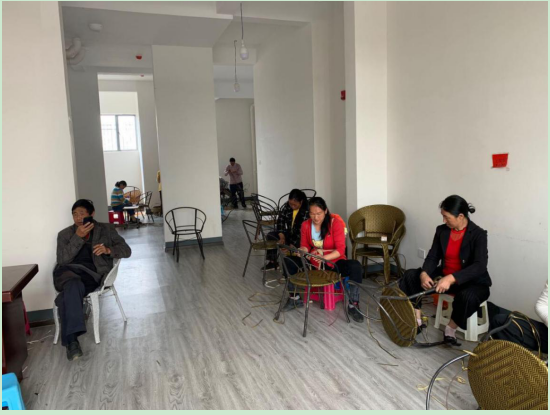 扶贫车间总是能解决群众的烦恼及问题,藤编扶贫车间里热心的陈朝珍时常耐心地为刚去车间的邻居指点编制桌椅,陈朝珍的女儿和女婿都外出务工,留下身体不好的老伴和自己在家,原来事事都要女儿女婿为之掏钱,现在,她在扶贫车间编制藤椅为自己和老伴挣来生活费。她说:“真的特别感谢国家的扶贫工作,让我住上了这么好的房子,现在我们又在小区的扶贫车间来挣点生活费用,从家里到工作的地方只需要5分钟,而且在这里工作风不吹雨不打的,太阳也晒不到,搬迁到红路馨居真的是太幸福啦!”