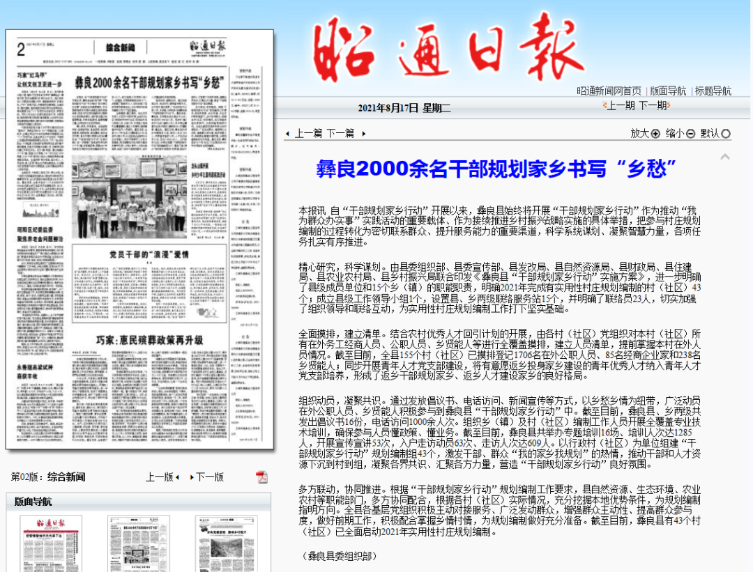 组织动员,凝聚共识。通过发放倡议书、电话访问、新闻宣传等方式,以乡愁乡情为纽带,广泛动员在外公职人员、乡贤能人积极参与到彝良县“干部规划家乡行动”中。截至目前,彝良县、乡两级共发出倡议书16份,电话访问1000余人次。组织乡(镇)及村(社区)编制工作人员开展全覆盖专业技术培训,确保参与人员懂政策、懂业务。截至目前,彝良县共举办专题培训16场、培训人次达1285人,开展宣传宣讲53次,入户走访动员63次、走访人次达609人。以行政村(社区)为单位组建“干部规划家乡行动”规划编制组43个,激发干部、群众“我的家乡我规划”的热情,推动干部和人才资源下沉到村到组,凝聚各界共识、汇聚各方力量,营造“干部规划家乡行动”良好氛围。