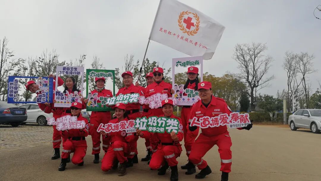 区红十字会党支部组织党员干部到昆阳街道中和社区、郑和文化广场开展爱国卫生“七个专项行动”——“手”护健康主题宣传活动
