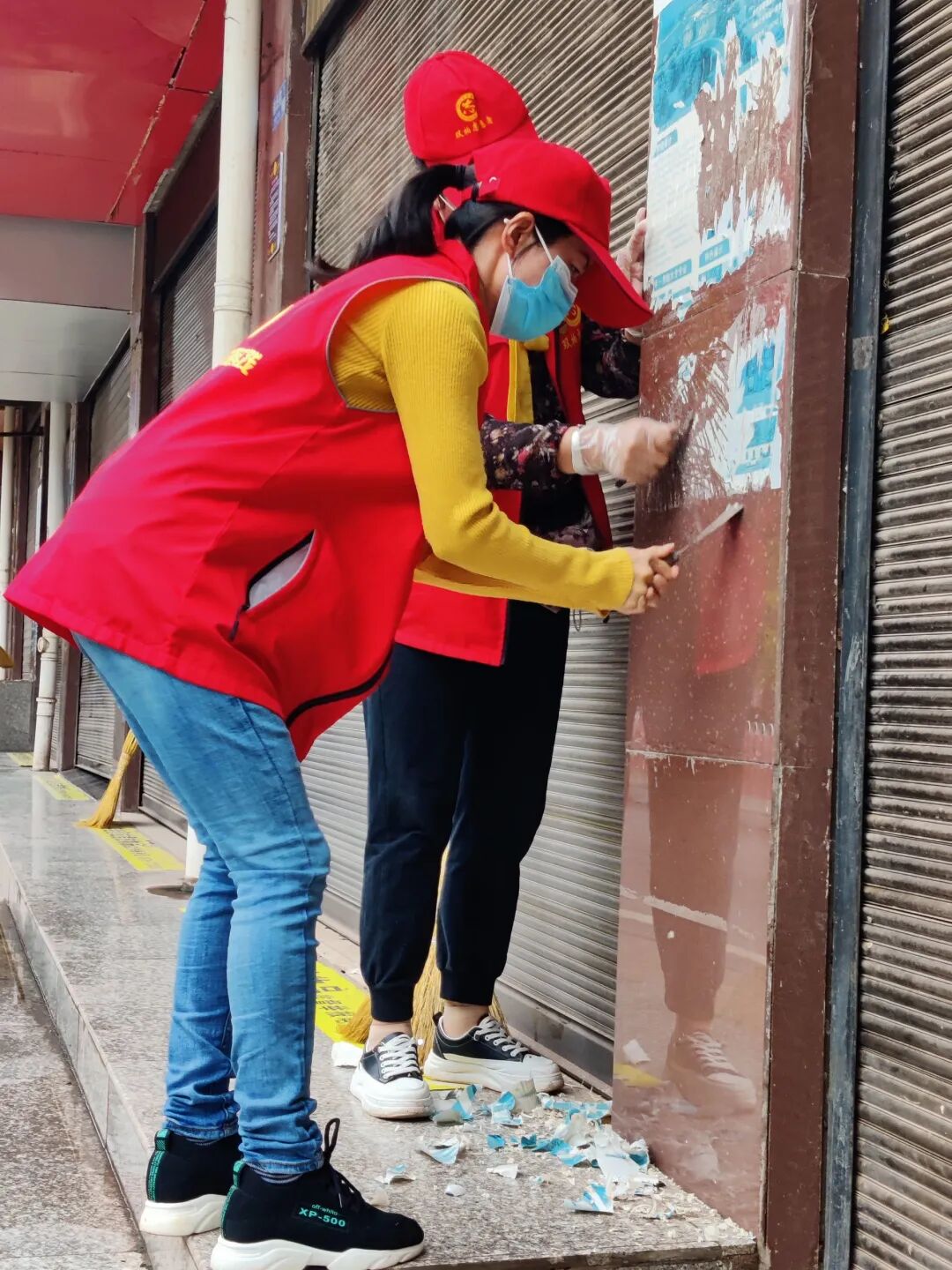 在各小区入口和重点区域粘贴疫情防控“温馨”提示,对辖区内绿化地、垃圾桶、背街小巷、卫生死角等进行了全方位清理,坚持工作区域、商铺门前五包,不留死角,形成常态。