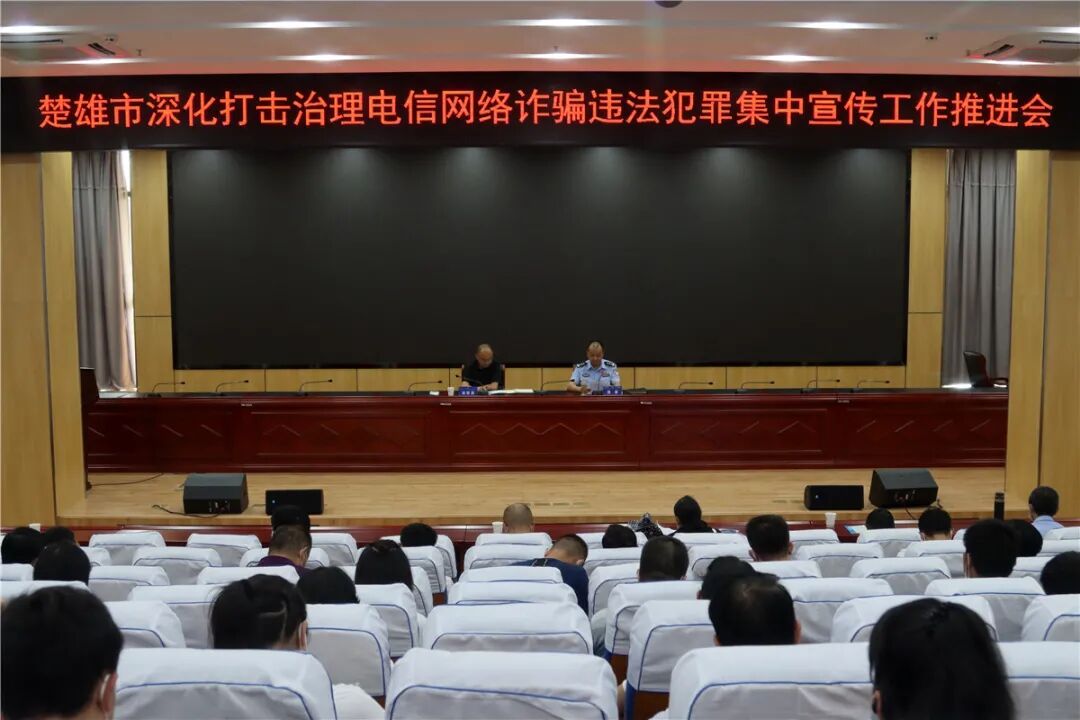二、党政主导、统筹推进。为积极推动反诈防范宣传的全民参与度,楚雄市公安局积极向市委政法委、市委平安办汇报,由市委平安楚雄建设领导小组召集市属各部门召开楚雄市深化打击治理电信网络诈骗违法犯罪集中宣传工作推进会,会议由平安楚雄建设社会治理58家成员单位、三大运营商负责人及15个乡镇负责同志参加。会上,楚雄市公安局党委委员、副局长夏勇代表市打击治理电信网络新型违法犯罪工作联席办通报了全市打击治理电信网络新型违法犯罪工作情况,并就下一步做好反诈宣传防范工作做了详细安排。市委政法委副书记段智源围绕近年来楚雄市高发电信诈骗的种类、特点、常见形式等展开介绍,重点讲述了贷款诈骗、冒充“公检法”诈骗、“杀猪盘”诈骗等常见作案手法,结合全市典型案例,深入浅出地讲解了防范电信网络诈骗的重要性、必要性,普及防骗识骗技巧。并对全市反诈宣传防范工作提出三方面的工作要求要求各部门要担好“主责任”,始终坚持守土有责、守土负责、守土尽责,强化部门协作联动,综合施策、多方发力,着力提升全市群众识诈、防诈和反诈能力。