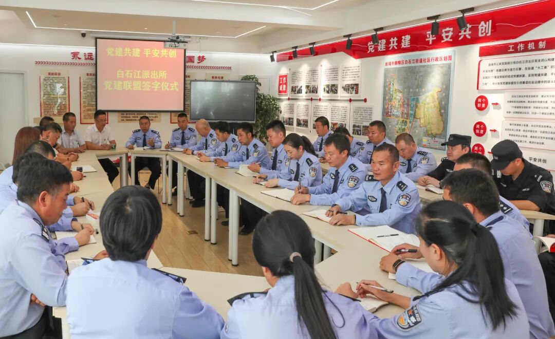 派出所党支部坚持“抓党建引领、促担当作为、让人民满意”的工作思路,打造 “滴水成江、积安向善”党建品牌,深化党史学习教育,丰富“三会一课”载体形式,与辖区36个基层党组织组成党建联盟,建成600平方米党群服务中心,实现阵地共建、资源共享、平安共创。