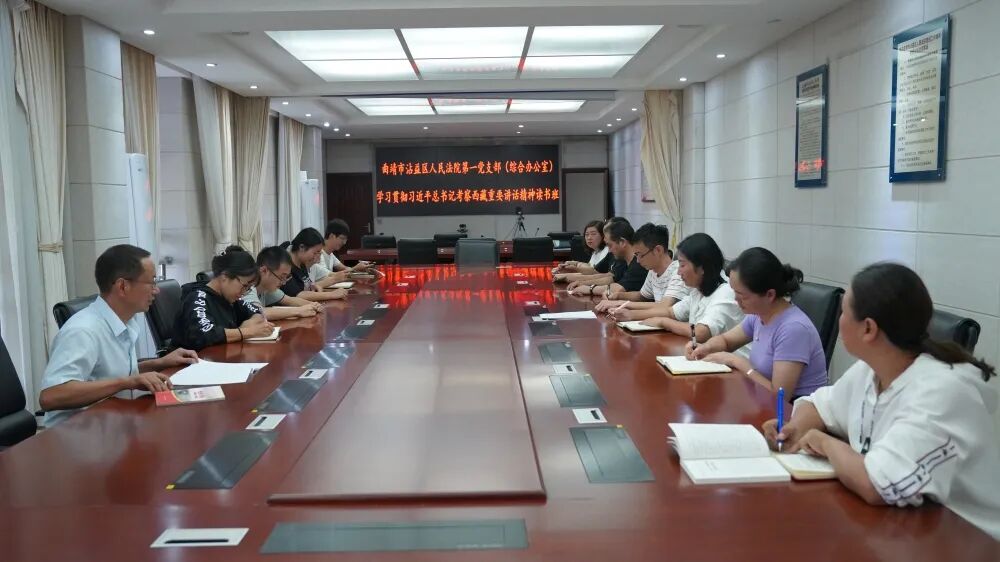 刑事审判团队开展专题读书班,学习贯彻习近平总书记在西藏考察期间的重要讲话精神。 读书班上,张艳梅副院长领学了习近平总书记在西藏考察期间的重要讲话精神,并提出工作要求:一是打牢民族团结的思想基础;二是坚持以人民为中心的发展思想;三是坚定不移走生态优先,绿色发展之路;四是在锤炼党性,为民服务,推动发展上力行。 随后副院长刘斌、刑庭庭长吕金秀、少年庭庭长万静分别交流了学习心得。 民事、行政、审判管理团队组织开展学习贯彻习近平总书记在西藏考察期间的重要讲话精神读书班。 读书班上,陈焱庭长带领大家学习了习近平总书记在西藏考察时的重要讲话和重要指示精神,并做了交流发言:“习近平总书记指出西藏工作要做好群众工作。同样,司法工作也要以民为先,在今后的工作中我们应该牢固树立以人民为中心的服务理念,提升人民群众对我们的信任感和满意度。” 随后,大家分别交流了自己的学习感悟,通过学习研讨和交流发言,团队成员纷纷表示:作为一名共产党员、一名司法工作者,我们要更加牢记初心使命,坚定理想信念、践行党的宗旨,努力创造无愧于历史和人民的新业绩,最大程度为人民群众提供优质高效的司法服务。