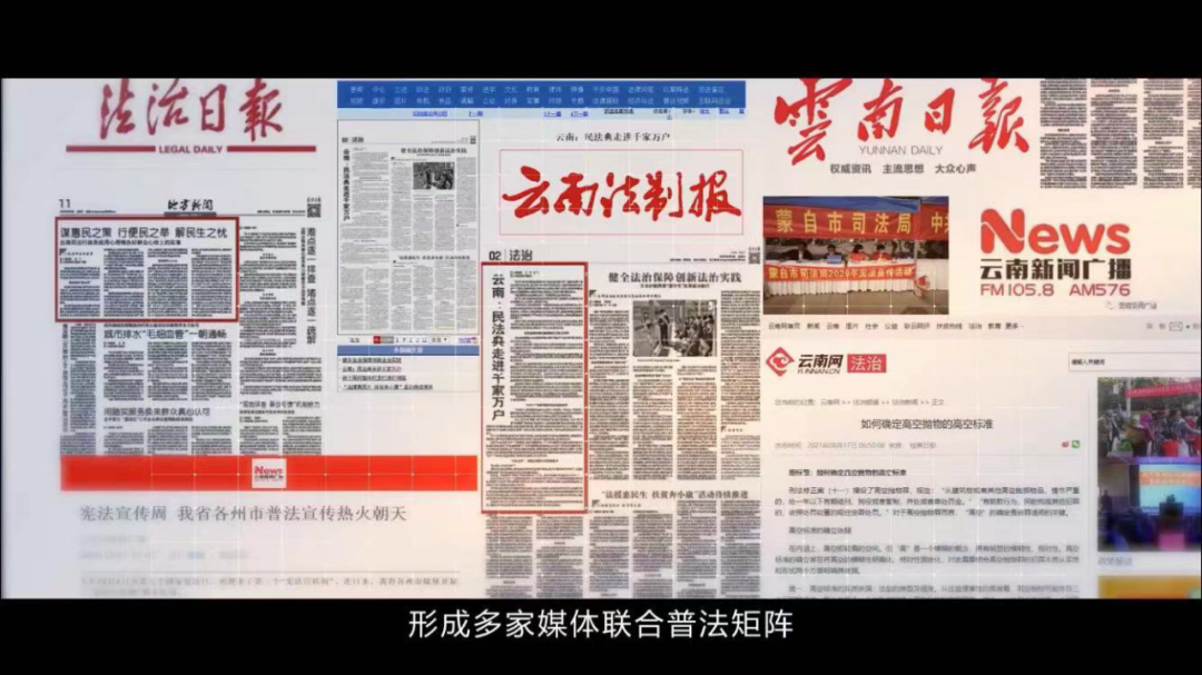 依托云南广播电视台公共频道金牌栏目《民生关注》的良好口碑和广大收视人群,《以案释法》栏目每周三、周六播出,至今已播出400多期普法节目。同时,法治日报、云南广播电视台新闻频率、云南日报、云南网、云南法制报等多家媒体也持续刊播“以案释法”,形成多家媒体联合普法矩阵。