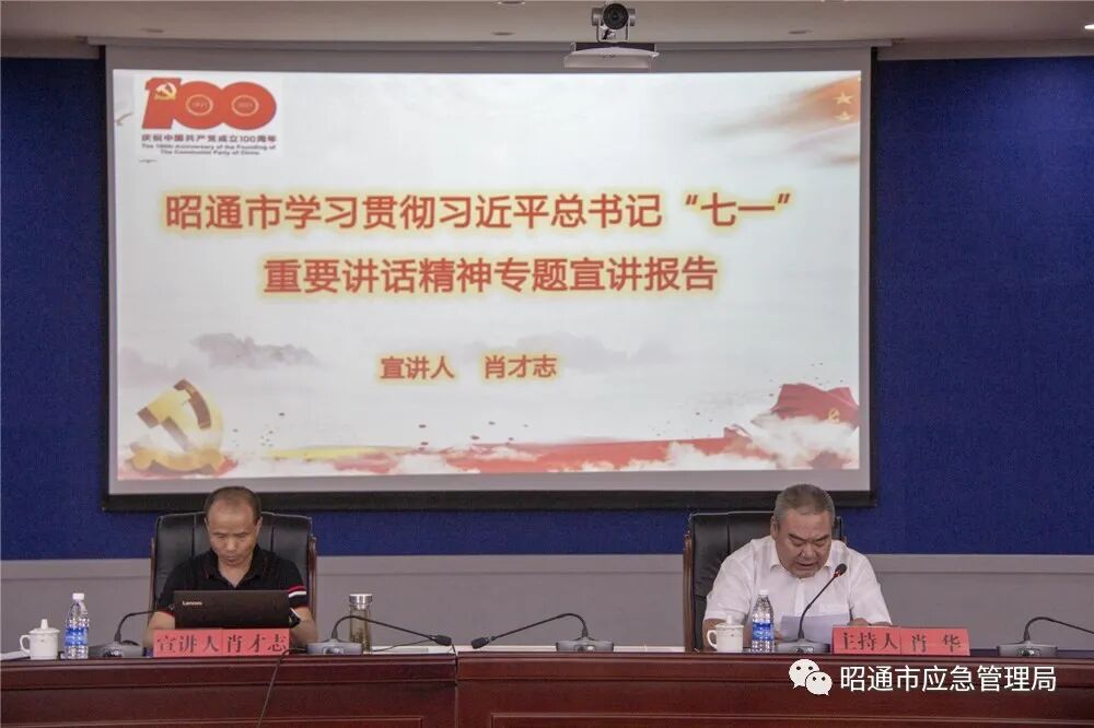 8月24日下午,市直机关学习贯彻习近平总书记“七一”重要讲话精神第七场专题宣讲报告会在昭通市应急救援中心举行,会议邀请了市社科联党组书记、主席肖才志同志作专题宣讲报告。市应急管理局党委委员、副局长肖华同志主持会议,市水利局、市审计局、市广电局、昭通广播电视台、市应急管理局等5家单位干部职工160余人参会学习。