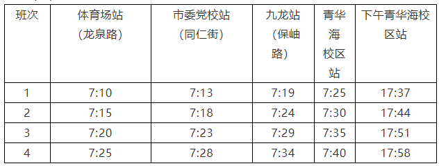 为保障保山市实验小学青华海校区学生及家长出行,市公交公司于2021年9月1日起开行实验小学青华海校区公交专线,公告如下:(二)主要途经道路:太保南路-龙泉路-九龙路-保岫路-兰蕙路;(三)主要途经站点:工人文化宫站、体育场站、九龙站、青华海校区站;