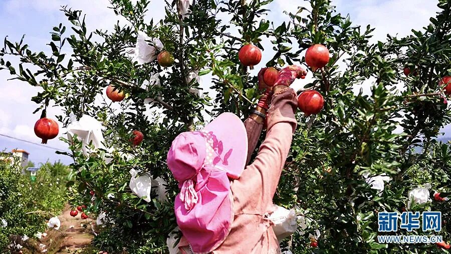 村民采摘石榴(摄于9月9日)。新华网发(姚安县融媒体中心供图)