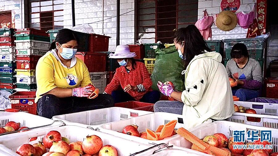 村民们在分拣石榴。新华网发(姚安县融媒体中心供图)