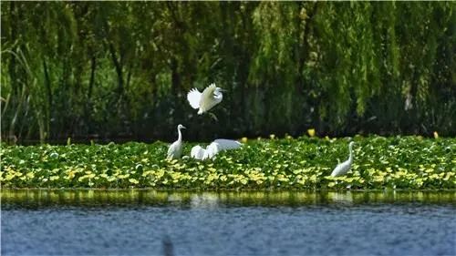 滇池外海和草海之间的湖滨路一侧有一块滇池治理的“试验田”。从不大显眼的一道门走进去,眼前豁然开朗,迎面一片宽广的水域,湖水清澈,浅水区水草繁茂,像是一片水下森林,水草根部鱼儿穿梭游动,还有螺蛳、贝壳等。海菜花在水面上星星点点,远处湿地绿意盎然,天空中水鸟翻飞,时而在水面休憩。