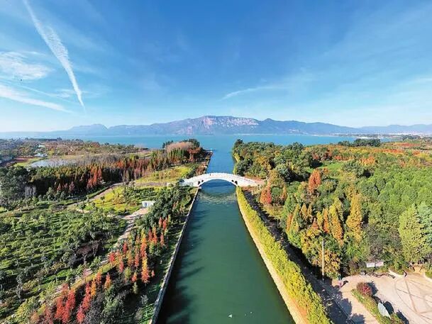 以湿地生态环境效能、湿地布水系统为核心,开展滇池沿湖生态湿地建设和提升改造,在滇池沿湖建成一批生态湿地及绿色廊道,突显生物多样性保护成果。截至目前,昆明市已完成滇池湖滨生态湿地建设5.4万亩,正在全力推进宝丰半岛、星海半岛、福保半岛、观音山等生态湿地建设项目。