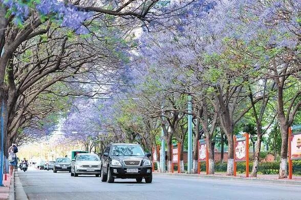 实施美丽昆明建设行动,打造“美丽景区”“美丽公路”“美丽街区”,让市民出行300米至500米见绿,已成为绿化工程的“美丽工程”。昆明对全市重点区域内新建和提升改造的道路,栽植高大乔木,因地制宜配置各种花灌木或各类宿根类花卉,打造各具特色的春城林荫大道。