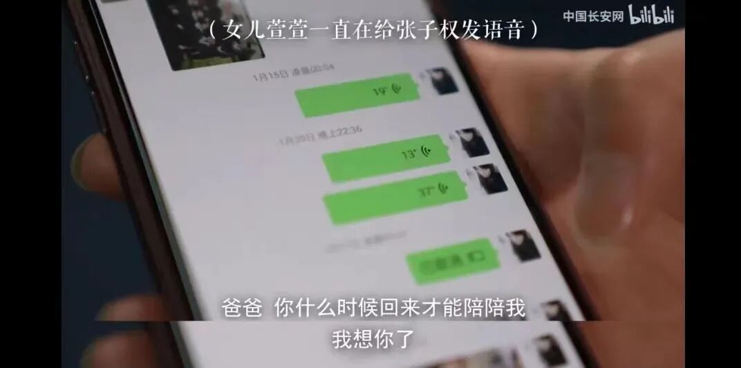 而相识的一幕再次上演,区别只是对象从张子权换成了他的女儿。5岁的小女孩无法理解死亡,妈妈只告诉她,爸爸出差去了。小小的孩子只能对着手机,一次又一次地重复给爸爸发微信:爸爸,你什么时候回来才能陪陪我。