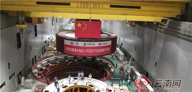 9月27日,世界在建最大水电站--白鹤滩水电站右岸11号机组转子在厂房主安装间转子工位起吊并成功吊入机坑与主轴精准对接,标志着白鹤滩水电站右岸第6台百万千瓦机组全面进入总装阶段。【详情】