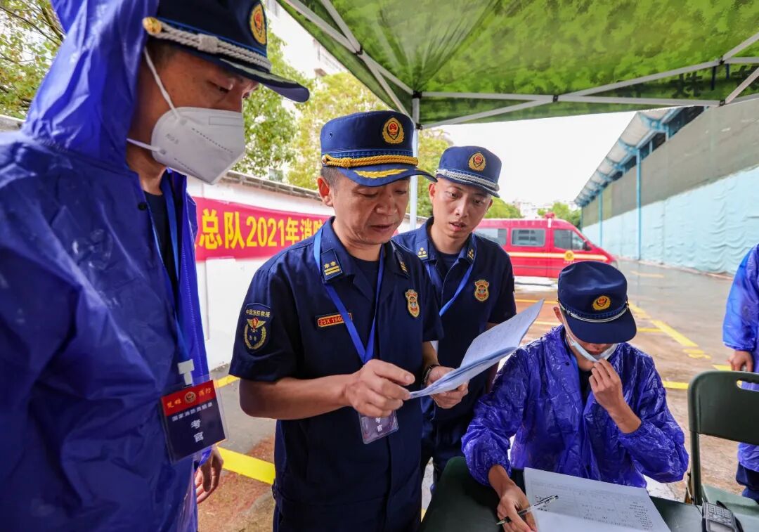 9月29日,连夜暴雨之后的楚雄一片阴凉。营区外,消防救援指战员投入抗洪防汛、排水疏散;营区内,2021年国家消防员招录考核冒雨进行,陈子栋政委等领导到场观摩指导。