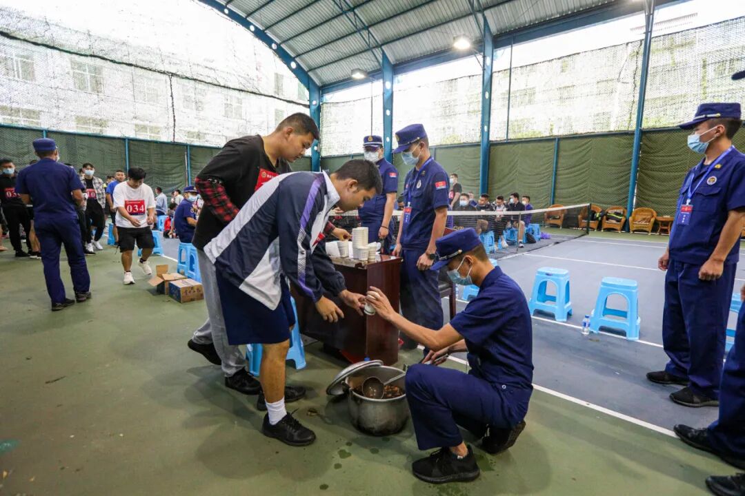 今天进行岗位适应性测试,科目立足实战,检验应征青年是否具备成为一名消防员基本的身体、心理、业务素质。科目包括负重登六楼、原地攀登六米拉梯、黑暗环境搜寻和拖拽4项内容。