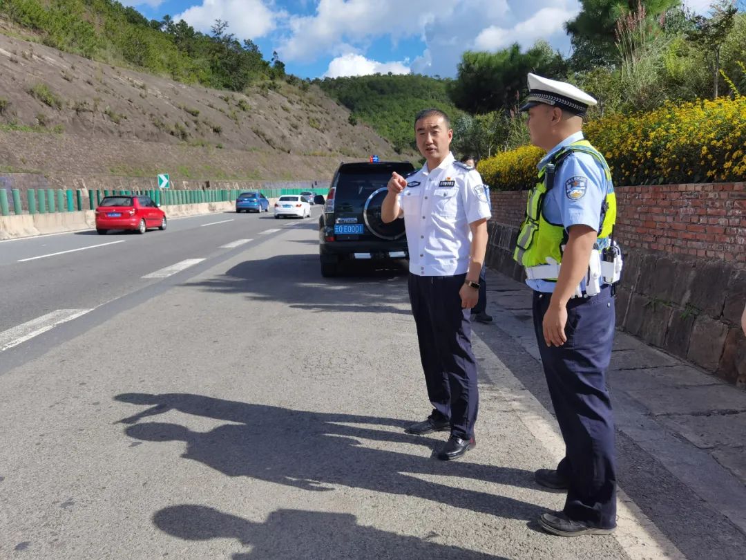 10月6日,州人民政府副州长、州公安局党委书记、局长娄东深入楚大高速公路督导检查国庆返程交通安保工作。
