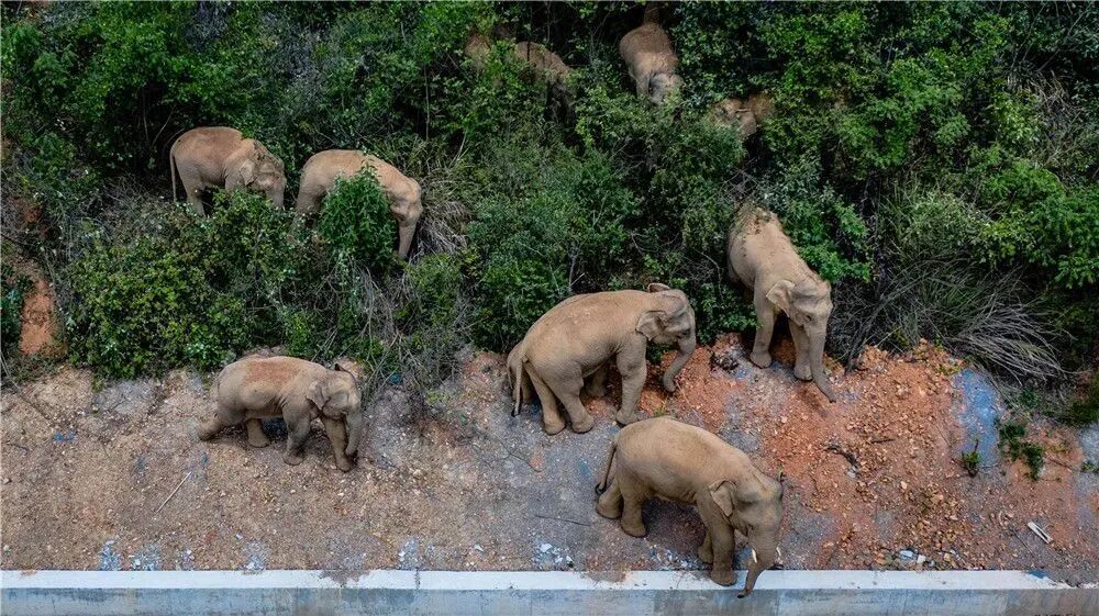 亚洲象群(无人机照片) 新华社记者 胡超 摄