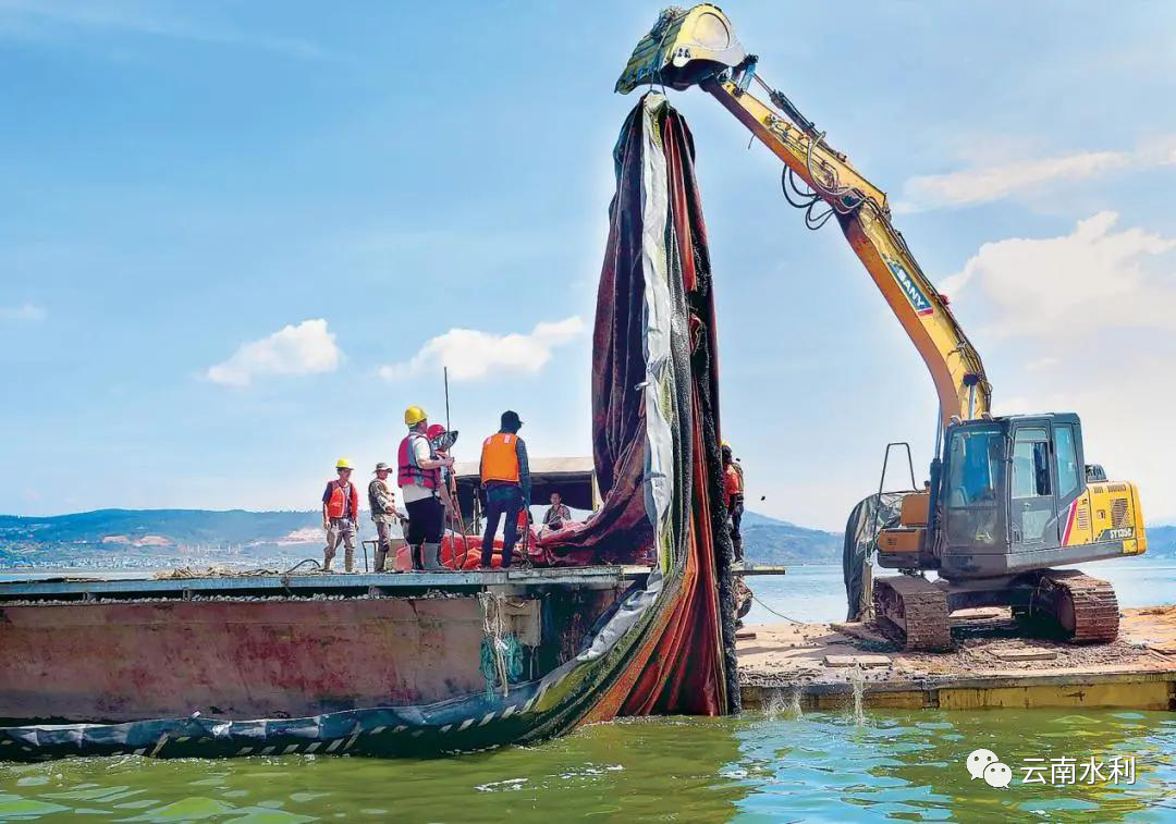 杞麓湖国控水质监测点周边的柔性围隔被拆除
