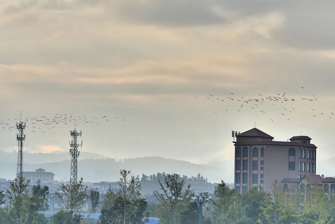 从9月下旬开始,昌宁县城的居民时不时会看到,有几个较大的鸟群在县城南北的田园上空盘旋。究竟是什么鸟呢?国庆期间,分别在城南和城北看到了鸟群,原来是灰头麦鸡,总体数量约近千只。