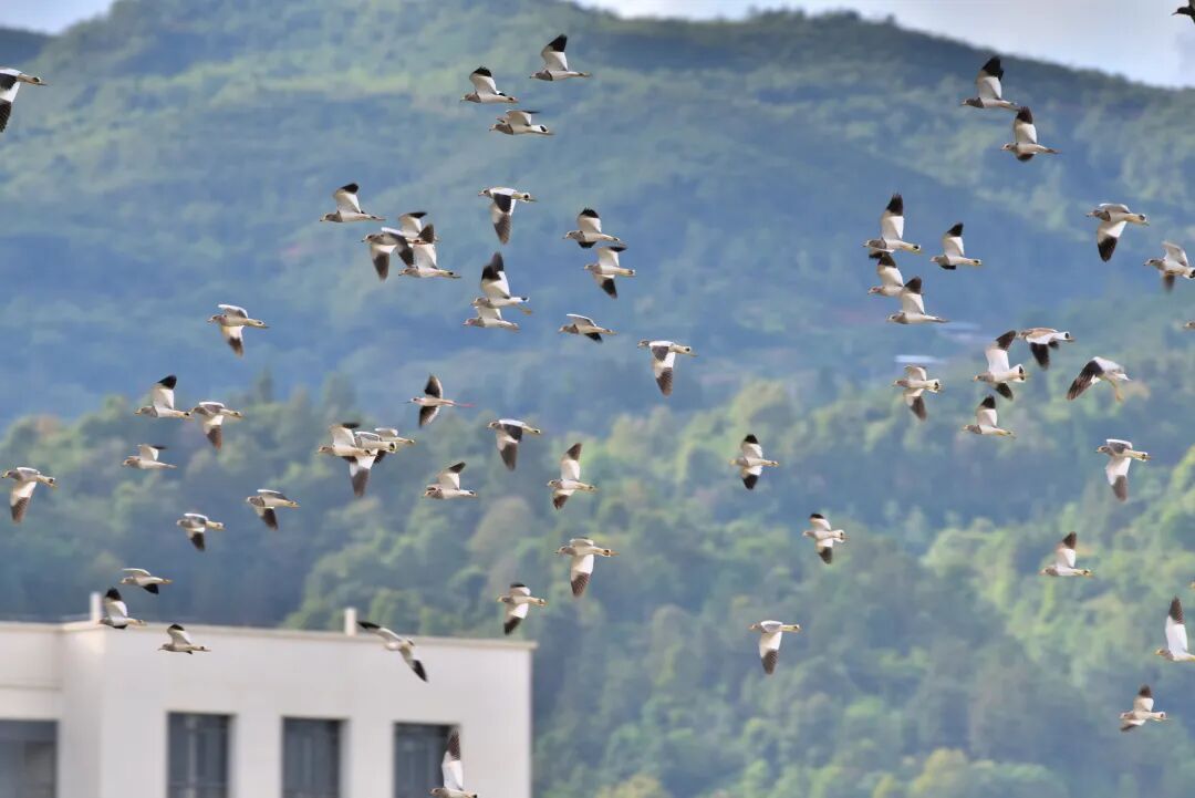 这是在昌宁县城第二次观测记录到大规模灰头麦鸡群。此前一次,是2020年2月29日,一大群灰头麦鸡飞临昌宁城南荷塘,时而绕着县城城内城外上空飞翔,时而如雨点般落于残荷之间,引来了许多居民的围观。许多人纷纷在朋友圈里晒图,说昌宁来了海鸥群,后来经过查询,才知道灰头麦鸡。