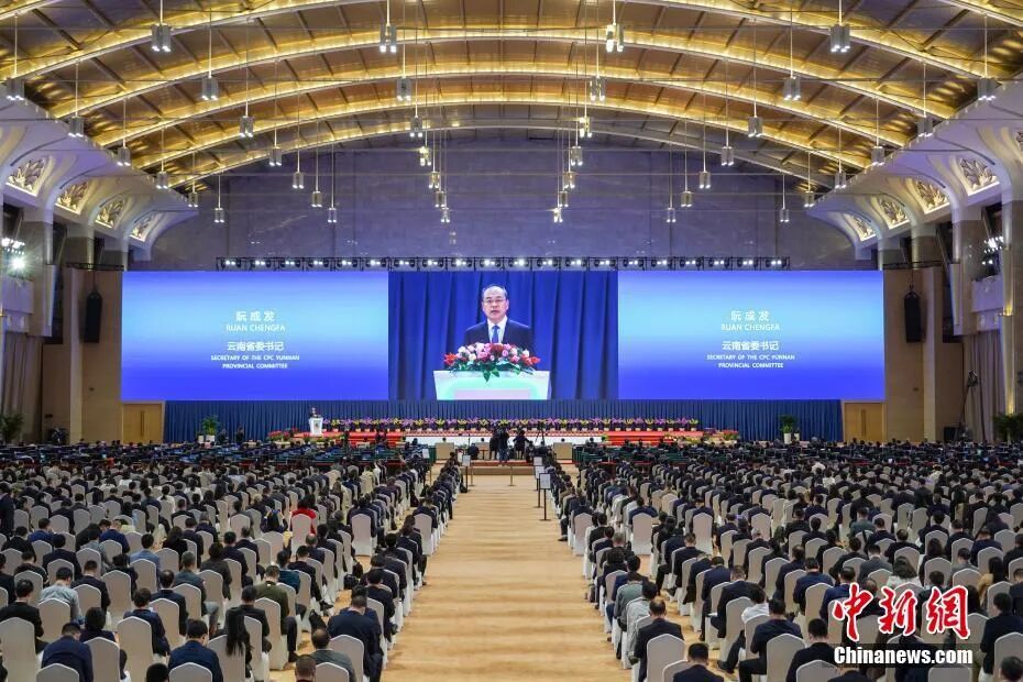 10月14日,《生物多样性公约》第十五次缔约方大会生态文明论坛在云南昆明开幕。图为云南省委书记阮成发致辞。中新社记者 崔楠 摄