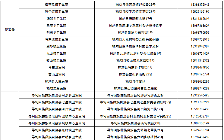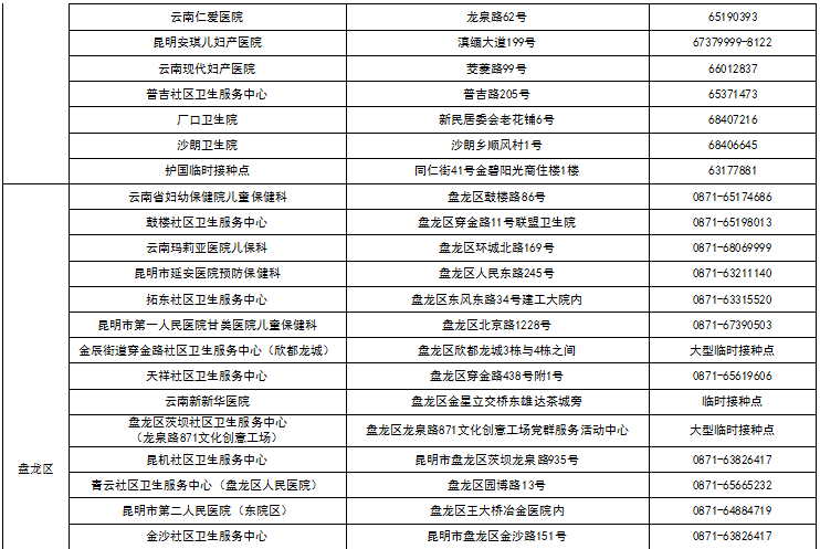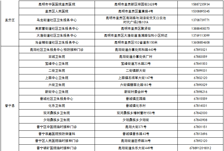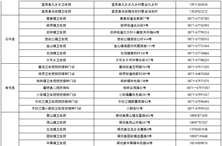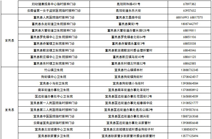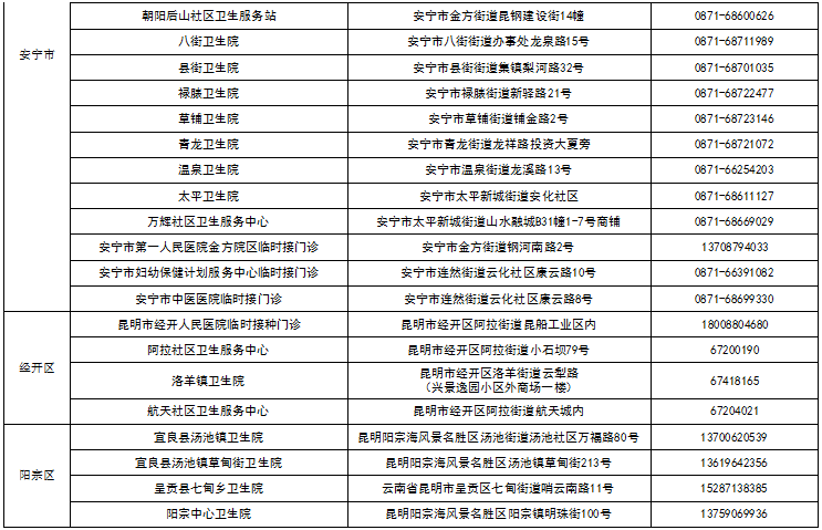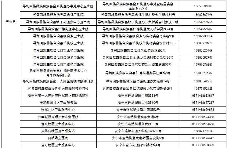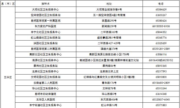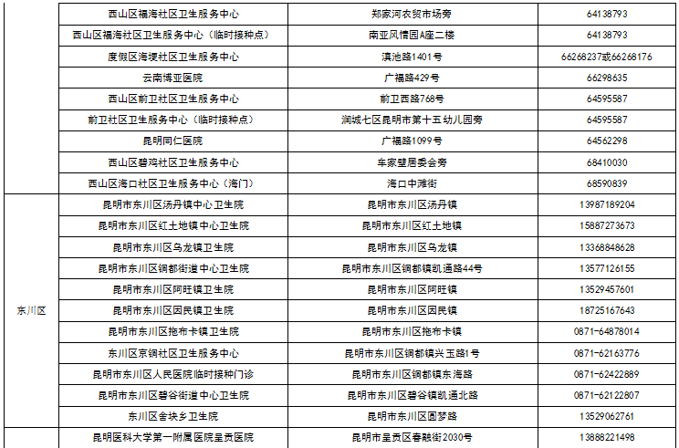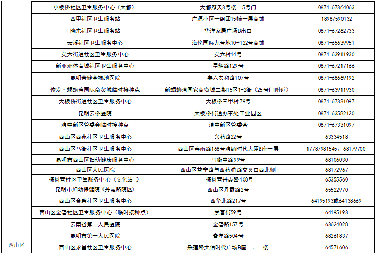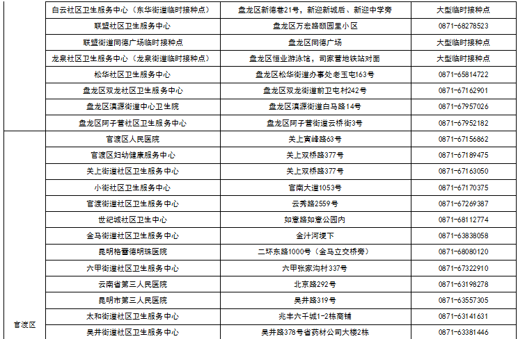 八、昆明市各县(市)区接种点名单